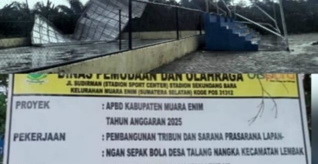 Muara Enim//Linksumsel-Menanggapi serta menyoroti adanya peristiwa ambruknya hasil proyek pembangunan tribun stadion sepak bola di Desa Talang Nangka Kecamatan Lembak Kabupaten Muara Enim beberapa waktu …