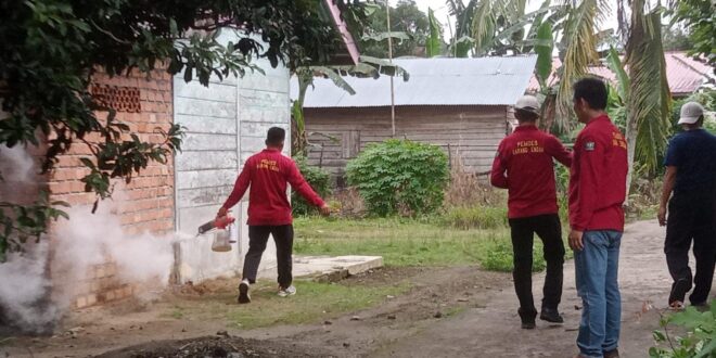 Muara Enim//Linksumsel-Menindaklanjuti serta mencegah agar tidak meluas adanya nyamuk Aedas aegypti yang menularkan virus Deman berdarah tersebut, Pemerintah Desa ( Pemdes) Desa Karang Endah Kecamatan Gelumbang Kabupaten Muara Enim, melaksanakan Fogging Demam Berdarah melalui metode pengasapan insektisida untuk membunuh nyamuk Aedas aegypti dikawasan wilayah Desanya, pada Jum’at (30/01/2026) pagi pukul 09:00 WIB.