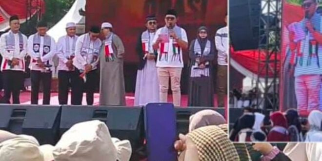 Palembang//Linksumsel-Dalam gelar aksi dan orasi bela Palestina, Bebaskan Palestina atau Palestina Merdeka yang dihadiri ribuan orang (umat.red) dihalaman Menpora Kota Palembang pada Minggu (09/11/2025).