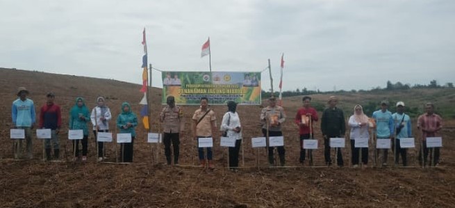Bhabinkamtibmas Hadiri Penanaman Jagung Hibrida Program Ketahanan Pangan di Desa Semangus