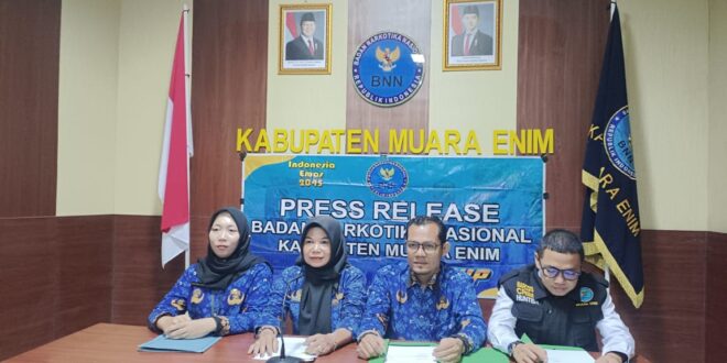 Muara Enim//Linksumsel-Kepala BNN Muara Enim AKBP Erlangga. S.E.,M.H menggelar acara press release akhir tahun 2025 yang di wakili langsung oleh Arni Zulifah Martrianingsih, SE Kasubbag Umum BNNK Muara Enim yang berlangsung di Aula kantor BNN Muara Enim. Senin (22/12/2025).