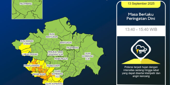 Demikian peringatan dini yang diinformasikan melalui Prakiraan BMKG Sumatera Selatan https://nowcasting.bmkg.go.id. (j.red).