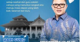 PALI//Linksumsel-Wakil Ketua DPRD Kabupaten Penukal Abab Lematang Ilir (PALI) Firdaus Hasbulah SH MH, melalui atas nama DPRD Kabupaten Pali mengucapakan, selamat memperingati Hari Guru Nasional …