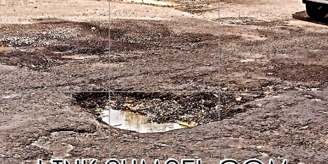 Muara Enim//Linksumsel-Terpantau dijalan Jenderal Sudirman atau jalan lintas Palembang -Muara Enim yang tepatnya didepan gerbang Gedung Olahraga (GOR) Pancasila Muara Enim, terdapat lobang jalan yang menganga mengancam keselamatan warga, khususnya bagi para pengendara, baik itu pengendara roda dua dan empat.
