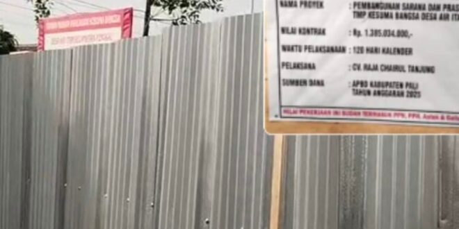 Terungkapnya kegiatan proyek.yang menggunakan dana APBD Kabupaten Pali TA 2025 melalui Dinas Perumahan dan Kawasan Pemukiman (Perkim) Pemkab. Pali tersebut, ketika awak media merasa curiga saat melakukan investigasi dilapangan terdapat Pagar seng panjang yang sedikit aneh karena terdapat papan proyek Pagar seng panjang tersebut.