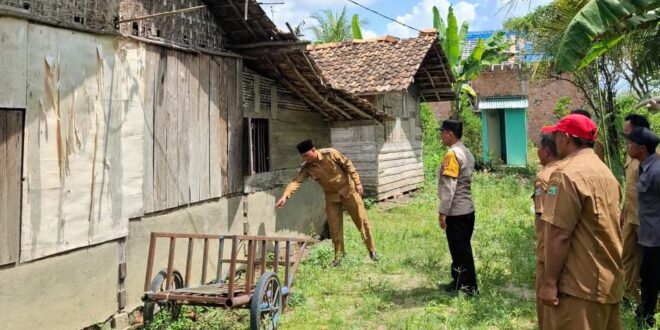Bhabinkamtibmas Polsek Gelumbang Bripka Azhari bersama Kepala Desa Suka Menang Ahmad Redi, S.Pd dan perangkat desa turun langsung melakukan pengecekan rumah milik inisial S (34), seorang petani yang sehari-hari berjuang memenuhi kebutuhan hidupnya, Selasa (21/4/2026).