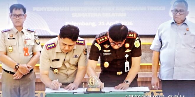 Kepala Kantor Pertanahan Kabupaten Muara Enim Handry Uswander H.P, S,ST.,SH., MH, beserta jajarannya secara langsung menghadiri kegiatan penandatanganan Perjanjian Kerja Sama antara Kantor Wilayah Badan Pertanahan Nasional Provinsi Sumatera Selatan dan Kejaksaan Tinggi (Kejati) Sumatera Selatan, pada Selasa (21/04/2026).