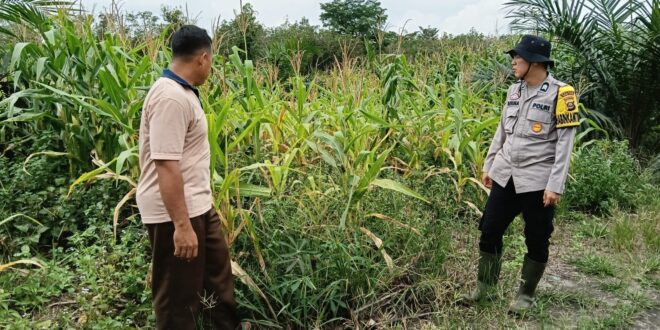 Dukung Ketahanan Pangan, Bhabinkamtibmas Polsek Gelumbang Cek Progres Jagung di Desa Karang Endah