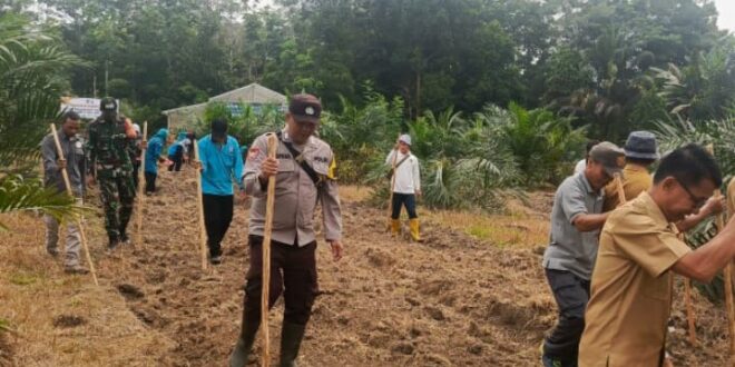 PALI//Linksumsel-Dalam rangka mendukung program ketahanan pangan nasional, Polsek Penukal Utara bersama unsur Muspika dan masyarakat melaksanakan kegiatan penanaman jagung di lahan pertanian Desa Muara Ikan, Kecamatan Penukal Utara, Kabupaten Penukal Abab Lematang Ilir (PALI), pada Senin (20/10/2025) sekira pukul 09.00 WIB.