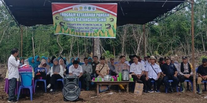 PALI//Linksumsel-Dalam rangka mendukung program pemerintah di bidang ketahanan pangan, Polsek Talang Ubi bersama unsur Forkopimcam dan masyarakat Desa Karta Dewa Kecamatan Talang Ubi, Kabupaten Penukal Abab Lematang Ilir (PALI) melaksanakan kegiatan penanaman jagung hibrida, Rabu (22/10/2025).