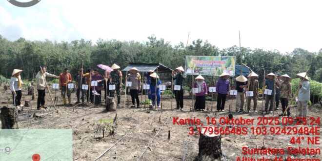 PALI//Linksjmsel-Dalam rangka mendukung program ketahanan pangan nasional, Polsek Penukal Utara bersama pemerintah Kecamatan Penukal Utara dan masyarakat Desa Sukarami melaksanakan kegiatan penanaman jagung di lahan pertanian seluas satu hektar, Kamis (16/10/2025) sekitar pukul 09.00 WIB.