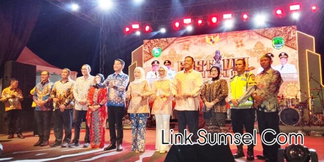 PALI//Linksumsel-Ribuan masyarakat Kabupaten PALI berbondong- bondong menyaksikan group Band Batas Senja dari ibu kota dalam hiburan penutupan Festival Candi Bumi Ayu di gelora November secara resmi oleh Bupati Penukal Abab Lematang Ilir (PALI) Asgianto. ST didampingi Ketua TP.PKK Dwi Septaria SE. Senin (24 /11/2025) malam.
