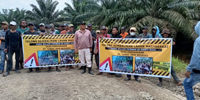 “Tolong Kembalikan Lahan Masyarakat yang Belum Pernah Diganti Rugi oleh Perusahaan PT Tunas Jaya Negeriku.”