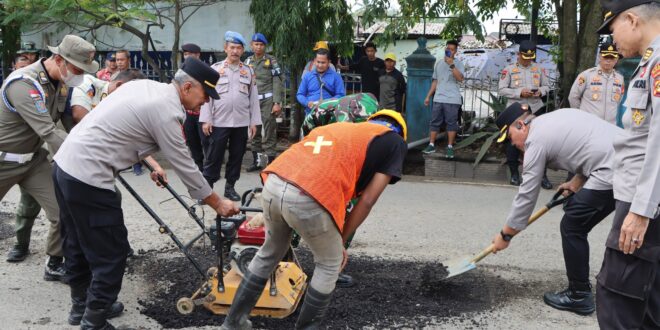 Muara Enim//Linksumsel-Polres Muara Enim melaksanakan kegiatan Gerakan Belida ASRI dengan melakukan penambalan jalan berlubang di sepanjang jalan Terminal Kota Muara Enim, Jumat (6/3/26) Kegiatan tersebut dipimpin langsung oleh Kapolres Muara Enim AKBP Hendri Syaputra, S.I.K bersama jajaran dan unsur terkait.