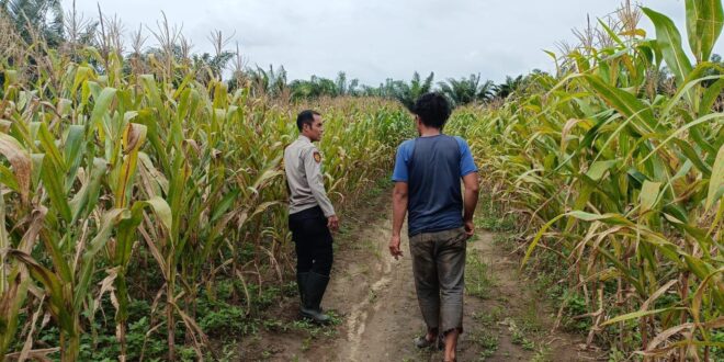 Kegiatan pengecekan lapangan tersebut dilaksanakan oleh Bhabinkamtibmas Polsek Sungai Rotan, Aiptu Wanto, yang didampingi oleh pengurus kebun jagung, Bapak Yan, selaku pihak pengelola lahan.