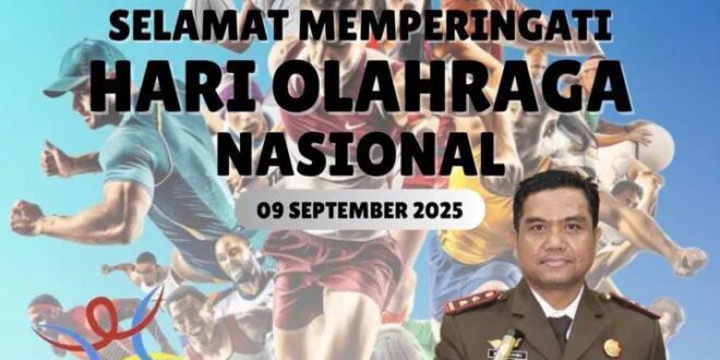 Melalui Hari Olahraga Nasional (Haornas) pada Tanggal 9 September 2025 ini, Keluarga Besar Kejaksaan Negeri Muara Enim mengucapkan, Selamat Memperingati Hari Olahraga Nasional Nasional (Haornas) Tahun 2025 “Olahraga Satukan Kita ,” ucap Kepala Kejaksaan Negeri Muara Enim Zulfahmi SH MH, Senin (09/09/2025).(j.red).