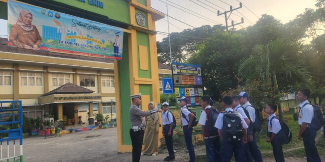 Muara Enim//Linksumsel-Dalam rangka Operasi Patuh Musi 2025, Satuan Lalu Lintas (Satlantas) Polres Muara Enim terus mengedukasi generasi muda tentang pentingnya keselamatan di jalan raya. Pada Selasa (22/7/2025), kegiatan digelar di depan SMP Negeri 2 Muara Enim, menyasar para pelajar sebagai bagian dari upaya preventif untuk menanamkan budaya tertib berlalu lintas sejak dini.
