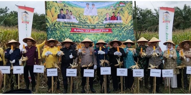 Salah satunya melalui kegiatan panen perdana jagung hibrida yang dilaksanakan oleh Kelompok Tani Merdeka di Desa Simpang Tais, Kecamatan Talang Ubi, Kamis (22/1/2025) pagi.