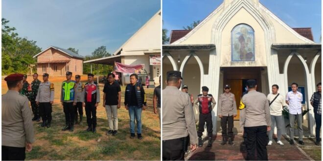 PALI//Linksumsel-Kepolisian Resor (Polres) Penukal Abab Lematang Ilir (PALI) melalui Polsek Talang Ubi melaksanakan pengamanan ketat terhadap rangkaian ibadah Perayaan Natal Tahun 2025 di Gereja Oikumene Pendopo (GOP) dan Gereja Huria Kristen Batak Protestan (HKBP), Kecamatan Talang Ubi, Kabupaten PALI, Rabu (24/12/2025).
