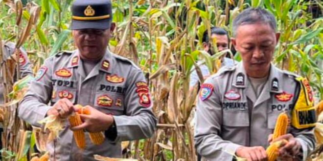 Muara Enim//Linksumsel-Dalam rangka mendukung ketahanan pangan nasional serta meningkatkan sinergitas antara Polri dan masyarakat, Polsek Lembak Polres Muara Enim melaksanakan kegiatan panen jagung Kuartal III tahun 2025 yang berlangsung di lahan milik warga bernama Frangki di Desa Lembak, Kecamatan Lembak, Kabupaten Muara Enim, Kamis (23/10/25).