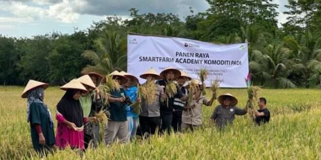 Kegiatan Panen Raya Smartfarm Academy komoditi padi oleh Kelompok Tani (Poktan) Pinang Muda berlangsung sukses di Desa Muara Sungai, Kecamatan Tanah Abang, Kabupaten PALI, Jumat (21/11/2025).