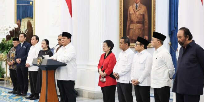 JakartaLinksumsel-Presiden Republik Indonesia Prabowo Subianto, mengajak seluruh pimpinan Partai Politik dan Pimpinan Lembaga Negara, MPR dan DPR berdiskusi guna membahas situasi dan kondisi negara saat ini. Dalam pidato kenegaraannya tersebut, berikut ucapan serta pernyataan dari Presiden Prabowo Subianto.