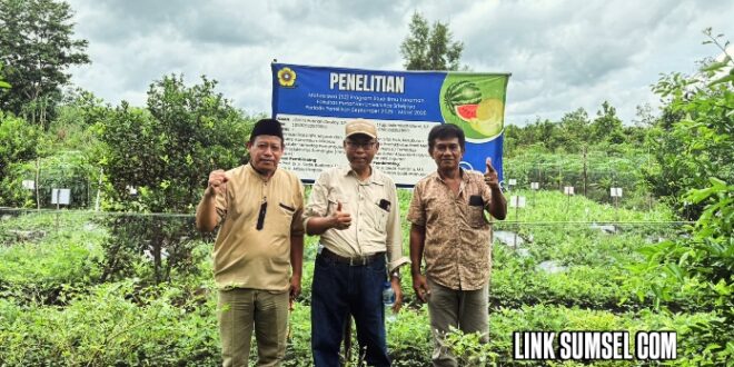 Guru Besar Fakultas Pertanian UNSRI, Prof. Dr. Ir. Dedik Budianta, M.S., turun langsung melakukan monitoring, evaluasi, sekaligus pembinaan terhadap kegiatan penelitian budidaya tanaman hortikultura yang berlokasi di wilayah Kecamatan Gelumbang, Kabupaten Muara Enim.