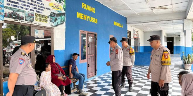 Muara Enim//Linksumsel-Menjelang arus mudik Hari Raya Idul Fitri 1447 Hijriah, personel Sat Binmas Polres Muara Enim turun langsung menyapa masyarakat dan para calon pemudik di Terminal Kota Muara Enim, Jumat (13/3/2026).