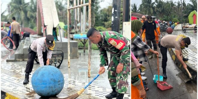 PALI//Linksumsel-Semangat kebersamaan dan kepedulian terhadap lingkungan kembali ditunjukkan melalui kegiatan gotong royong yang dilaksanakan di kawasan Simpang Lima Pendopo, Kecamatan Talang Ubi, Kabupaten Penukal Abab Lematang Ilir (PALI), Jumat (13/2/2026) pagi. Kegiatan tersebut melibatkan personel Polsek Talang Ubi, unsur TNI, serta Pemerintah Daerah Kabupaten PALI.