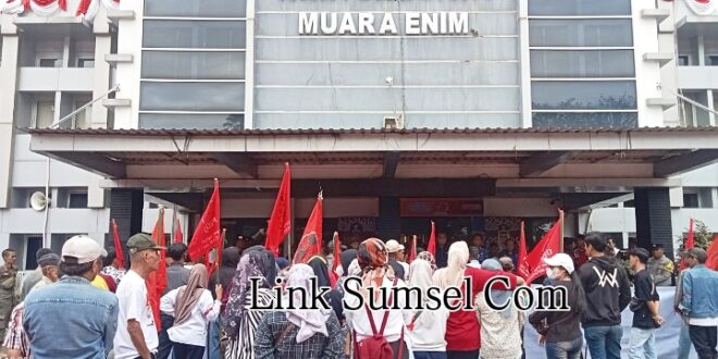 Muara Enim//Linksumsel-Aksi demo oleh gabungan aktivis dan Ormas Muara Enim-Sumsel Bersatu berlangsung di depan Kantor Bupati Muara Enim, pada Senin (17/11/2025). Massa meminta Bupati Muara Enim untuk mengevaluasi oknum pejabat pada Dinas Pekerjaan Umum dan Penataan Ruang (PUPR) Muara Enim, atas adanya dugaan pengondisian proyek.