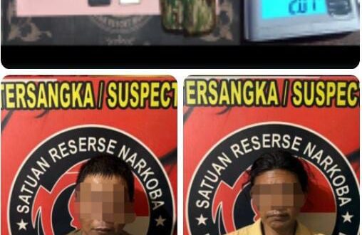 Petugas kami berhasil mengamankan dua pelaku berinisial MT (54) dan SN (41), keduanya warga Desa Celikah, Kecamatan Kayu Agung, Kabupaten OKI. Saat dilakukan penggeledahan, petugas menemukan enam paket narkotika jenis sabu dengan berat bruto 2,07 gram, dua plastik klip bening, satu wadah kotak warna pink, satu helai celana panjang loreng, serta dua unit telepon genggam yang digunakan untuk transaksi,” jelas Iptu Yurico.