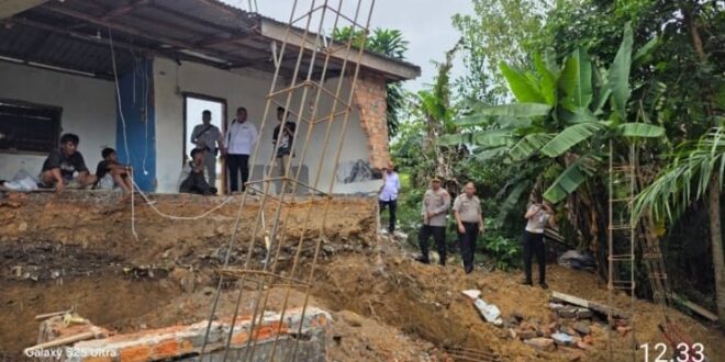 PALI//Linksumsel-Kapolres Penukal Abab Lematang Ilir (PALI) AKBP Yunar Hotma Parulian Sirait, S.H., S.I.K., M.I.K., turun langsung meninjau rumah warga yang terdampak longsor di Bukit Tudung, Kelurahan Talang Ubi Barat, Kecamatan Talang Ubi, Rabu (10/12/2025) sekitar pukul 11.15 WIB.