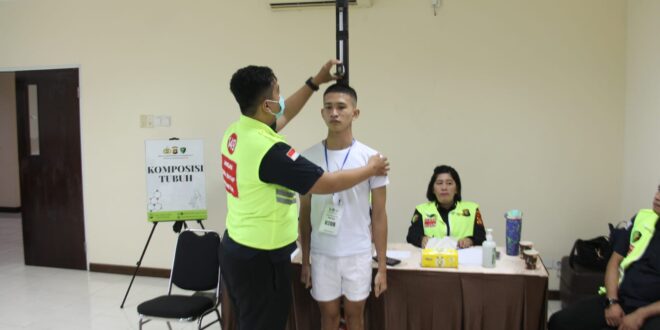 Peserta menjalani berbagai tahapan pemeriksaan, meliputi tes mata, THT, gigi, komposisi tubuh, serta pemeriksaan fisik lanjutan oleh tim medis Biddokkes Polda Sumsel. Seluruh proses dilakukan secara sistematis dan terstandar.