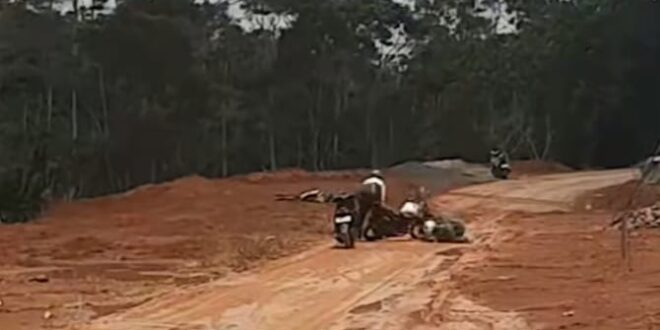 Muara Enim//Linksumsel-Beredar sebuah vidio yang viral di Media Sosial (Medsos) adanya insiden yang terjadi beberapa pengendara sepeda motor mengalami tergelincir akibat kondisi jalan yang licin.